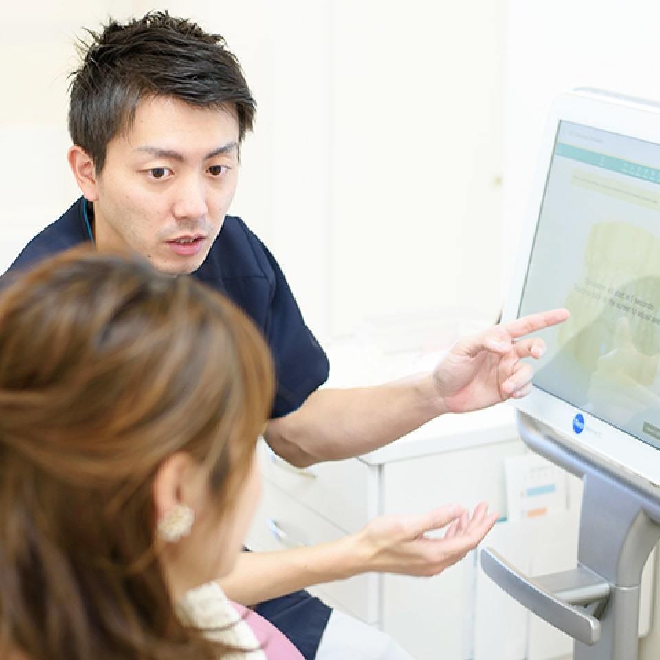 マウスピース矯正治療の適応の可否、一般的に想定される治療期間などの簡易診断を行います。