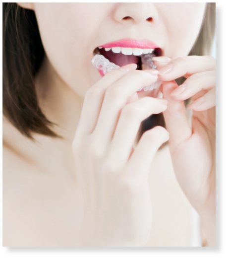 透明なマウスピースを使用して行うインビザライン矯正治療は、従来のように金属を一切使用しません。会話をしたり食事をするときに、金属の金具が見えることはないために、審美性に優れており、安心して治療を続けることができます。