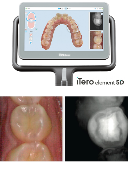 iTero element 5Dは当院で使用している「iTero element」の最新機種でカメラの精度、処理速度など従来のものよりもはるかに向上しており、より短時間でのスキャニングが可能になっています。また、近赤外線(NIRI)で隣接面の虫歯チェックが出来るようになりました。
