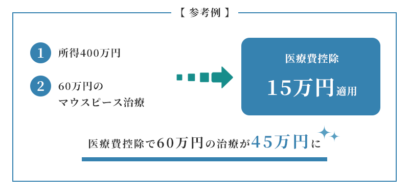 歯科治療費は医療費控除の対象です。年間10万円以上の医療費がかかった場合、国の定める医療費控除という制度を活用する事で、上記の矯正治療費から5%~45%の金額を還付金として受給する事ができます。